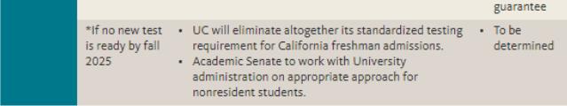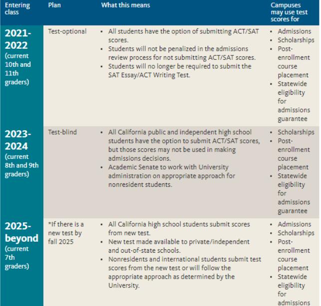 到2025年:取消SAT/ACT的考试要求,采用UC自己的考试评估。即便该考试还不可行,UC也不会再考虑SAT/ACT。
