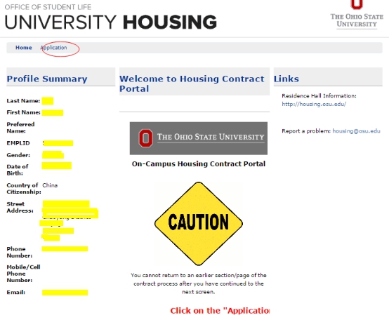 1. 用自己的用户名和密码登录(同查状态系统的账号信息)系统http://housing.osu.edu/contract。
