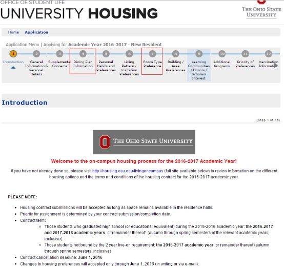 下面留美网小编以Ohio State University 为例,给下家详细说明一下。OSU 有个特殊规定:如果学生在18岁以下,那么必须将housing contract 填好之后,打印、签字(必须有父母签字),并将其跟350美金的check或money order(支票或汇票,需要自己去银行办理) 一起邮寄给Office of Housing Services。 反之, 学生有两种方式—在线提交表格并用信用卡交钱或者跟18岁以下学生相同的方式提交申请。这是大家首先需要提起注意的。另外,如果你是2015-2016学年毕业的高中生,你要签订两个学年的住宿合同。也就是说大一大二你就住在校内了。OSU 的宿舍分为两种:全年开放型和非全年开放型,后者需要加125美金/学年的住宿费。
