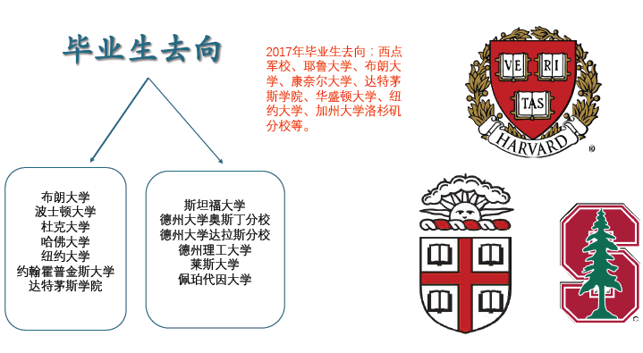 学校亮点六:升学走向超级棒!2017年毕业生去向:西点军校、耶鲁大学、布朗大学、康奈尔大学等。