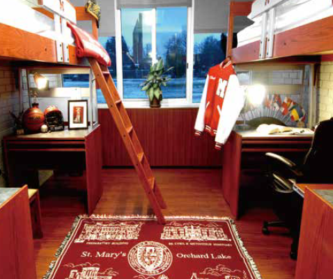 3、学校与曼多纳大学(Madonna University)合作,为学生提供真正的大学课堂教学。宿舍为2人间,配有私人浴室和卫生间。食堂提供3餐自助,是著名的吃得最好的住宿制学校。