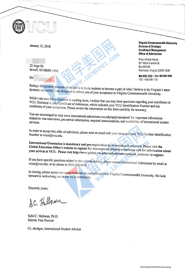 恭喜司徒同学获得Virginia commonwealth University(弗吉尼亚联邦大学)商科录取offer!-》2018美国大学申请进行中,详情咨询:400-000-7805