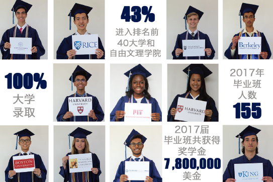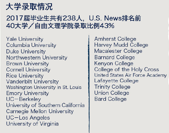 6、优异的大学录取:高比例进入常青藤及USNEWS前50大学,9年级开始升学指导规划!