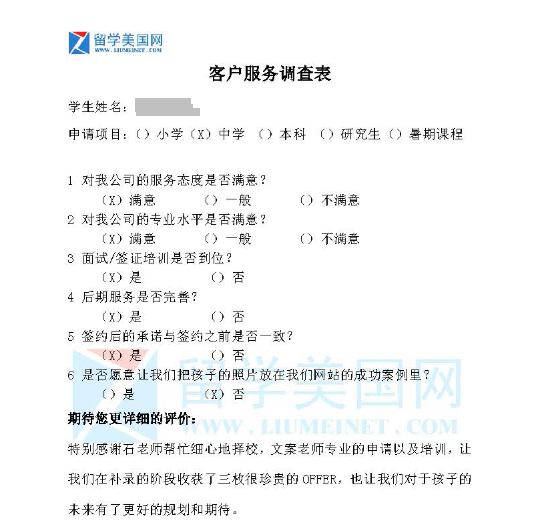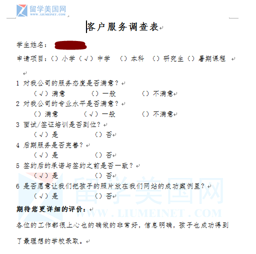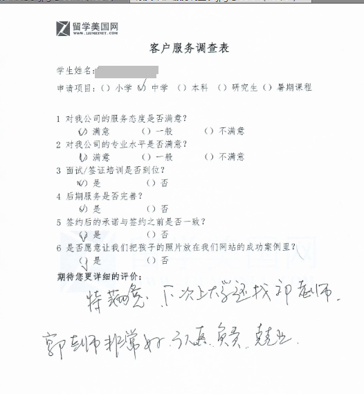 非常感谢各位家长的支持和反馈。留美网会再接在励,为更多的孩子申请到更加理想的学校,也祝愿大家,新的学期,取得优异的成绩~