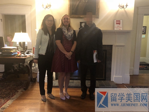 (石老师与招生官、留美网学生合影)