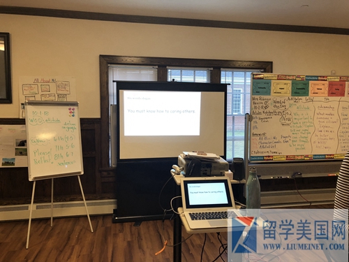 Wilbraham & Monson Academy 的课程非常丰富,带石老师参观的12年级女孩介绍该校的特色课程有:领导力、创业和全球研究课、证券市场分析、金融、经济学和外交课程。学校还有模拟联合国项目,艺术课程服装设计等课程。
