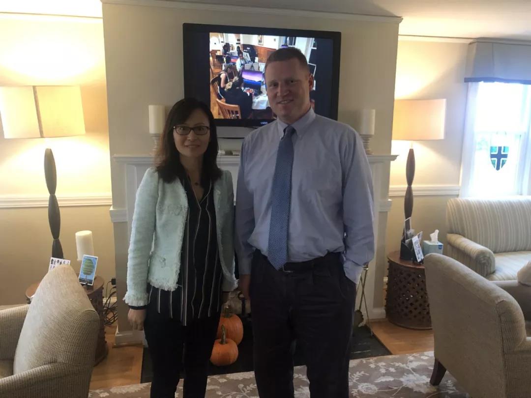 此次带石老师和学生参观Brooks School的学生是住在附近的走读学生,他参加了摔跤比赛和投资俱乐部。非常乐观阳光的男孩。同时石老师也与副招生主任Patrick热情的沟通了每年的招生情况和录取要求。他强调学校愿意招收学习能力强,有热情并且积极参与学校各项活动的学生,目前该校有16名中国学生。