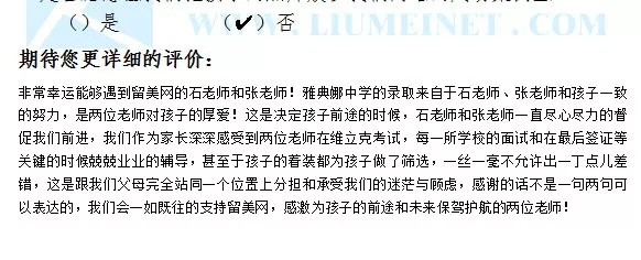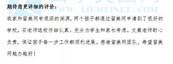 2019年已经接近尾声,但是美国高中招生春季、秋季招生却在火热进行中,每当看到每一位从留学美国网送出的学生都收获了自己心仪学校的录取,我们都感到非常的骄傲自豪。在今天这个特别的日子里,留美网非常感恩,也非常感谢每一位家长的信任、理解和配合,同时感谢每一位可爱而优秀的学生们,你们的满意才是我们值得荣耀和骄傲的事情。 带着你们的信任,我们未来将会不断的完善我们的专业、我们的服务,为更多的家庭、更多的孩子申请到理想的学校,成就孩子的美好未来! 在服务家庭、学生的时候我们经常会得到很多的反馈,而这些反馈则是我们通往成功途中一道靓丽的风景线,下面就让我们一起来倾听吧。