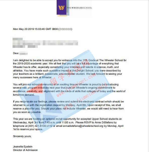 罗德岛排名第一的高中,去年我们是补录了两名学生,一个学生托福93分,SAT1340,10年级,这个家长两年前就联系过我们,当时他是通过邻居申请到了纽约的一所学校,然后并不满意,后来找我们补录。