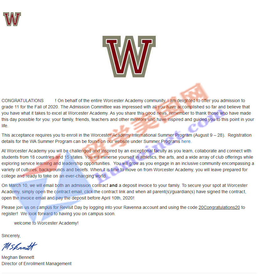 今天给大家分享的是Q同学的offer,让我们一起恭喜留美网Q同学伍斯特学院录取!