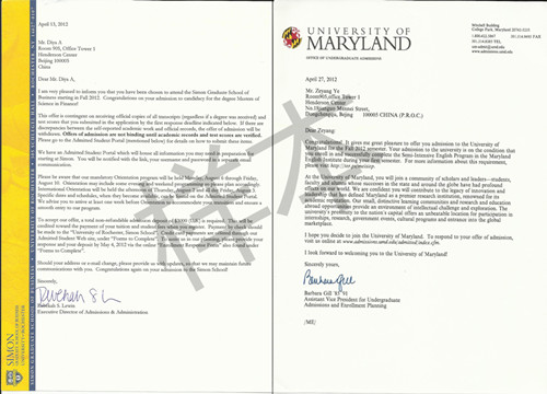 留美网亚同学荣被罗切斯特大学录取展示