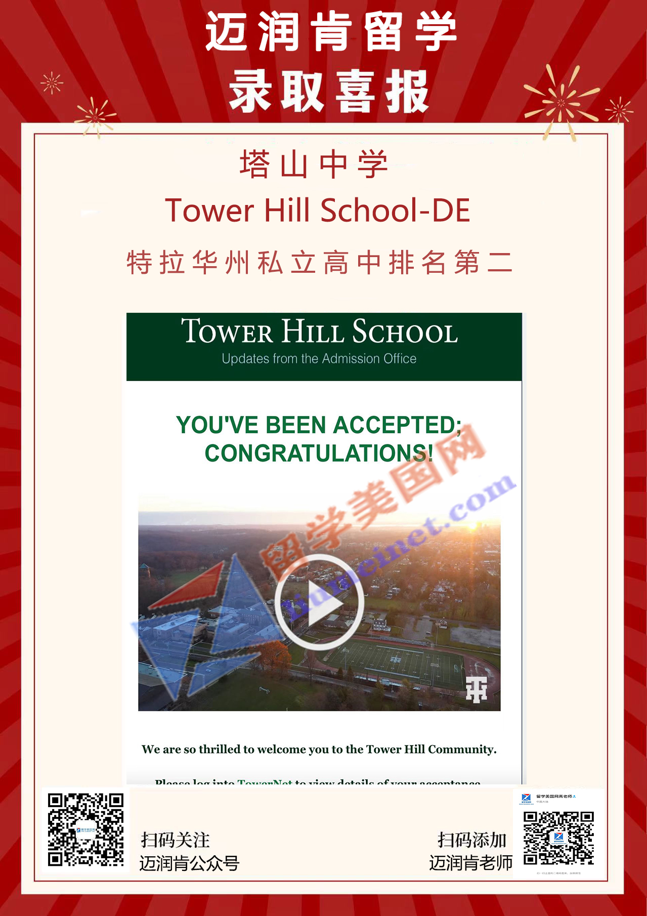 低分高录!恭喜留美网Y同学斩获塔山中学Tower Hill School-DE录取~