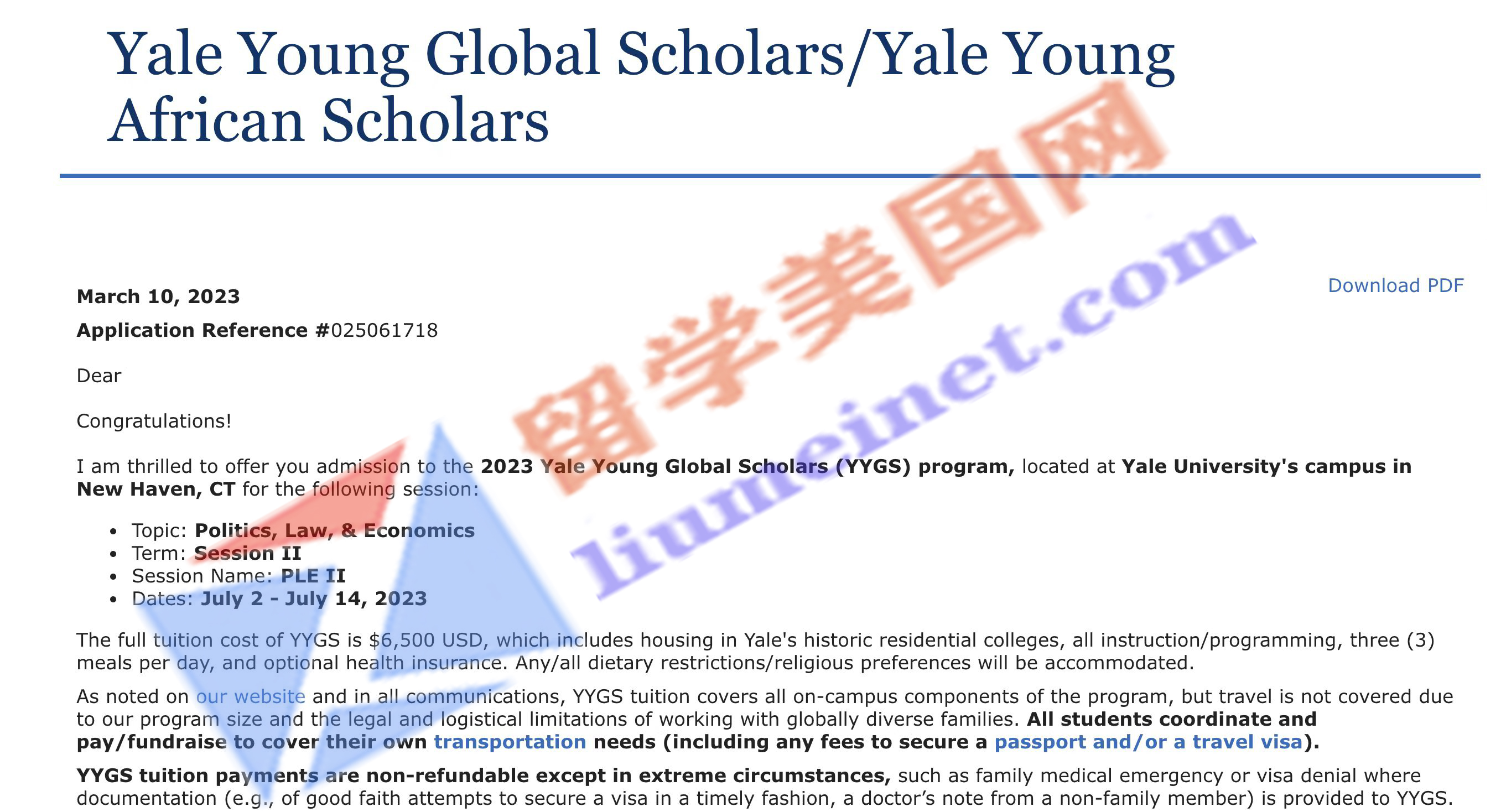 留美网再传录取喜报,恭喜留美网H同学斩获美国顶尖顶尖夏校YYGS录取。耶鲁全球青年学者项目(YYGS)是一个面向世界各地优秀高中学生的学术充实项目。每年夏天,在耶鲁历史悠久的校园内,来自150多个国家(包括美国所有50个州)的学生会参加一次为期两周的耶鲁全球青年学者跨学科课程。项目强调开放、探索和合作的学习方式。课程旨在让学生在各种不同的大学环境中体验学习,从大型讲座到小型研讨会,甚至是在课堂外进行的自发学习。
