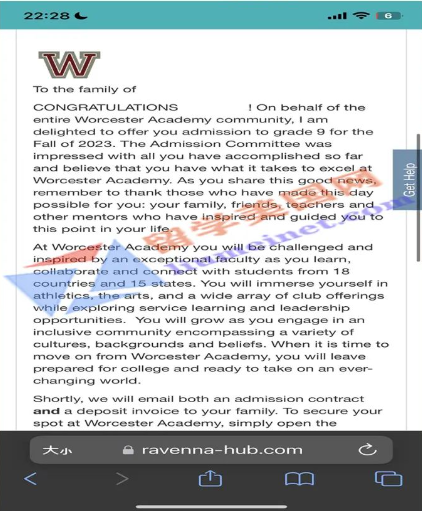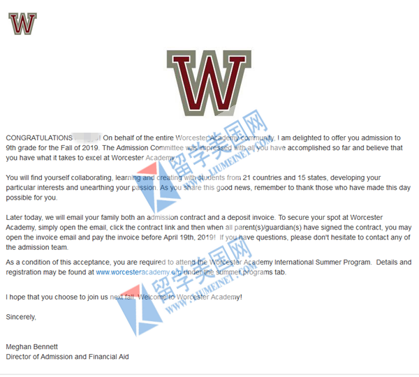 录取喜报~恭喜留美网D同学斩获伍斯特学院Worcester Academy录取~