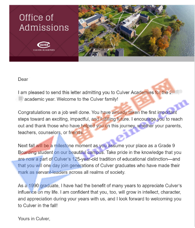 【成功案例】美国寄宿前50录取成功案例:Culver Academies