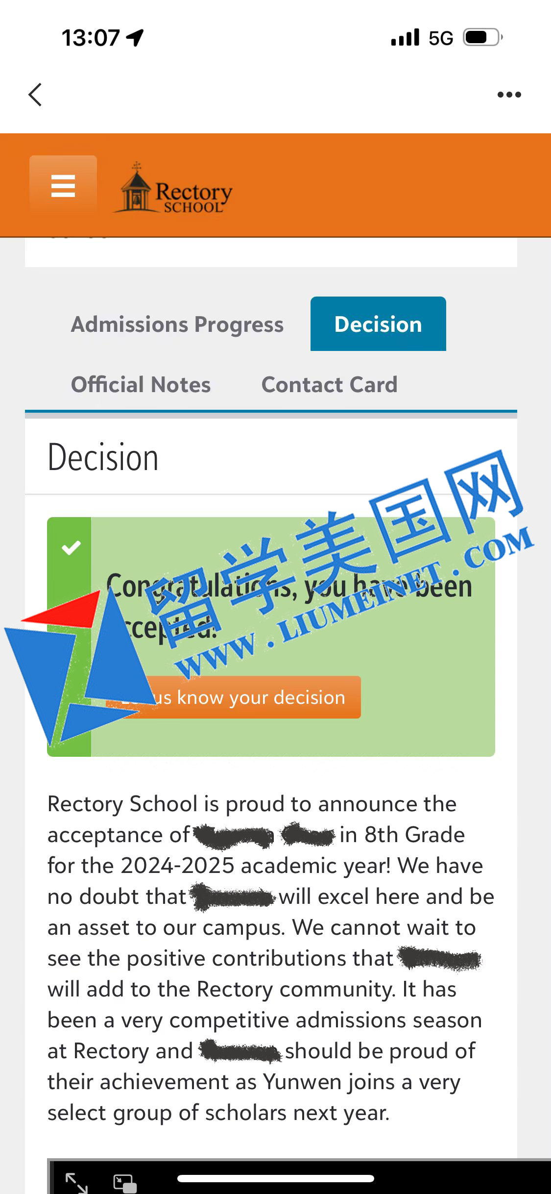 【录取喜报】恭喜留美网学子C同学斩获瑞克特瑞学校The Rectory School录取offer
