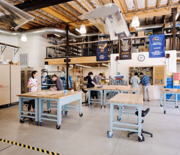 此外,制造商工作室还承载着雅典的飞机项目、机器人、电动汽车项目、3D打印机、计算机控制路由器、激光切割机以及一系列工具、电子产品和其他制造设备。本部门提供的一些核心课程包括基于项目的计算机编程简介、制作类的艺术与科学、CAD编程和应用科学。