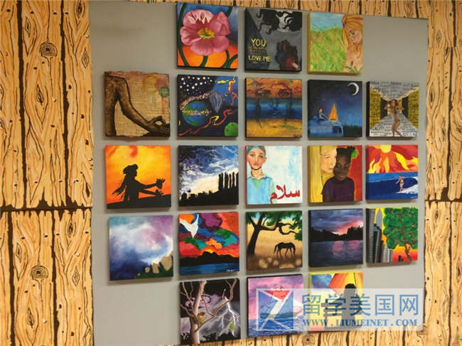学校学生毕业去向大学展墙。下图是学校2009-2012年升学去向,粗体代表最近学生就读学校,有杜克大学、布朗大学、威廉姆斯学院、康奈尔大学、达特茅斯大学,UC各个分校,等等。