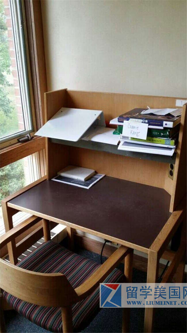 图书馆里,有学生自己的专门座位,挨着窗子,位置不错。