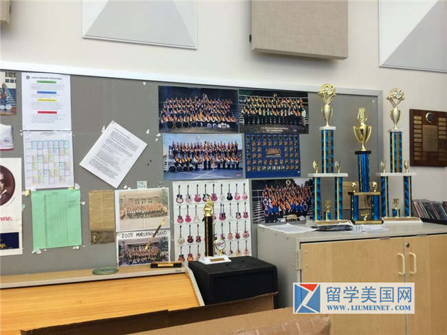 学校的音乐排练室,奖杯也是男孩子们引以为傲的。