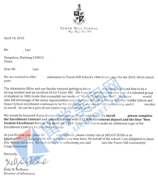美国顶尖高中补录又一牛OFFER!恭喜罗同学获美国走读高中TOP50高中塔山学校补录成功!