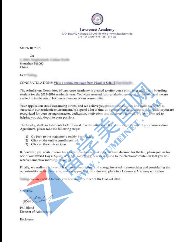恭喜欧同学获美国寄宿高中劳伦斯中学 Lawrence Academy录取!