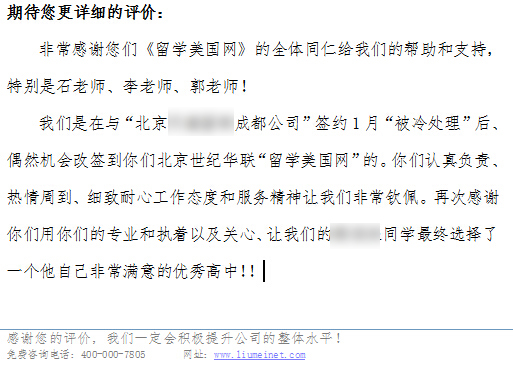 留美网再次感谢来自全国各地的家长和同学们对我们的信任,其中很多客户甚至没有来过北京办公室。留学美国网的同仁们会更加努力,提升服务质量,把工作越做越好!