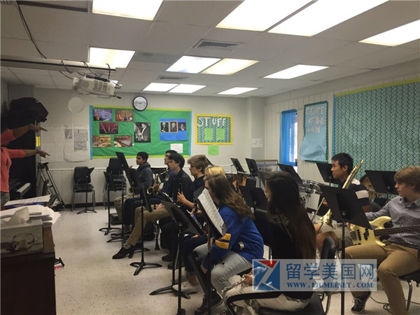 图为学生们在上交响乐课,老师是萨凡纳大学的教授。