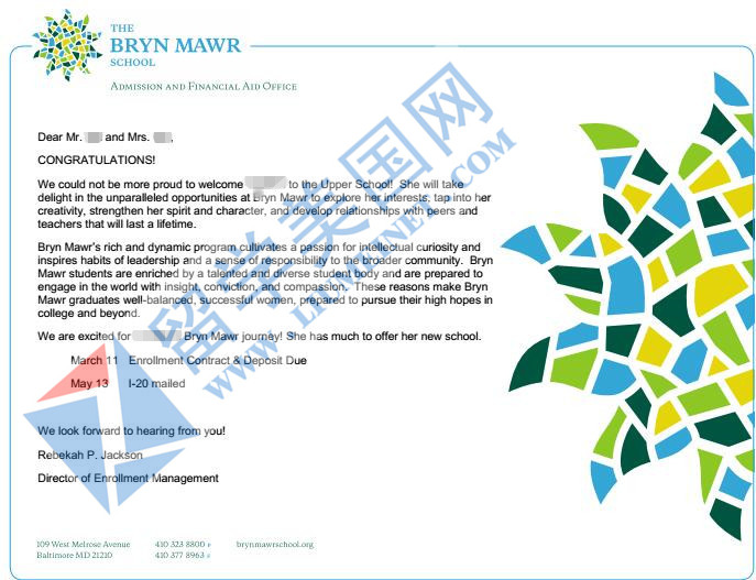 恭喜留美网学员裴同学获得 The Bryn Mawr School布林茅尔女校的offer。