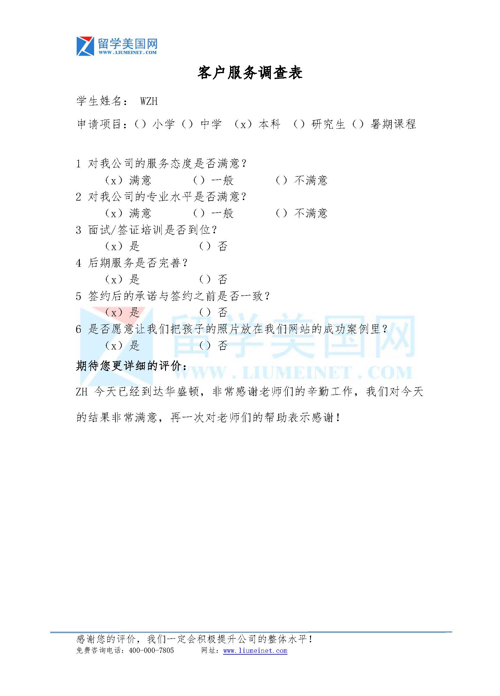 恭喜留美网WZH同学获得George Washington University录取Offer