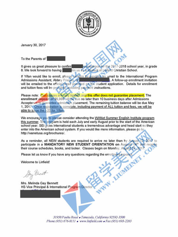 节后offer来袭,恭喜WYF同学获得Linfield Christian School 林菲尔德基督教学校录取