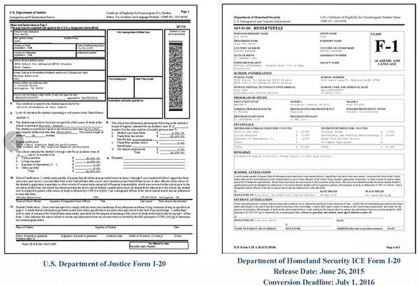 据悉,此次更新I-20表格是为了方便信息被录入到新的留学生和交流访问学者信息系统——SEVIS系统。官网称,从2015年6月26号开始,指定的校方代理只有使用规范化方式输入非移民的姓名才被允许录入SEVIS新系统,新系统将会自动把现有的学生姓名转换成新系统的规范化名称。I-20的目的和用途不会改变,仅是表格上信息显示的板式会有所变化。