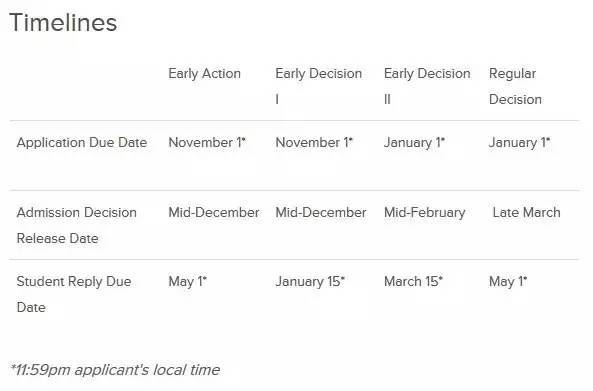 另外,芝加哥大学2017年本科申请还有一个变化:在原先EA的基础上,增加了ED1和ED2的申请,申请截止时间如下图。