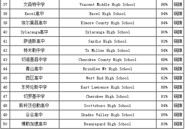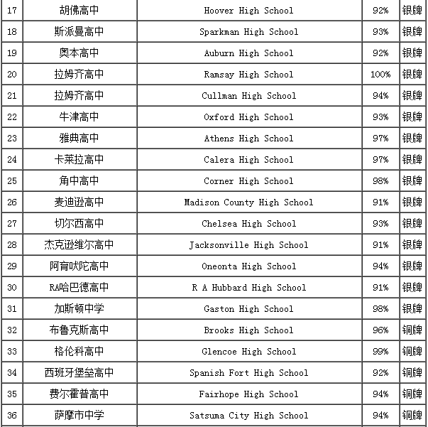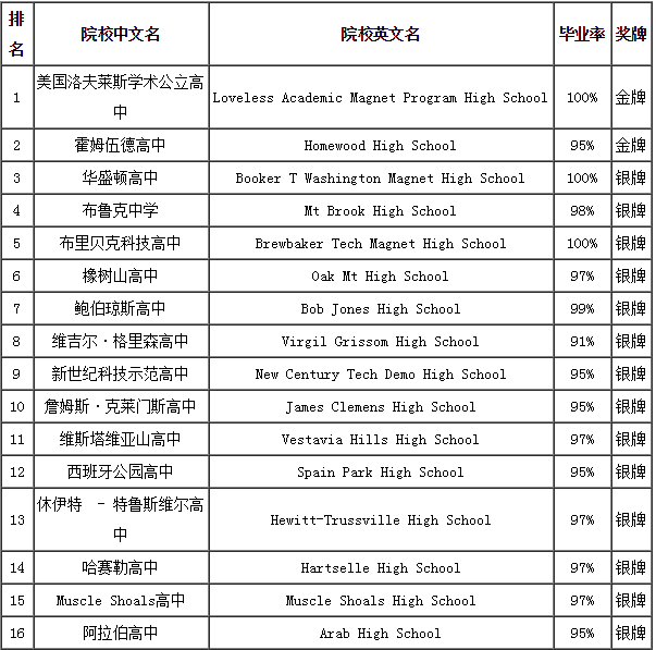 美国阿拉巴马州有很多的高中,今天USnews就公布了美国阿拉巴马州高中的排名,希望可以帮到大家!