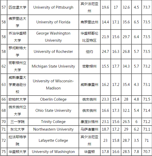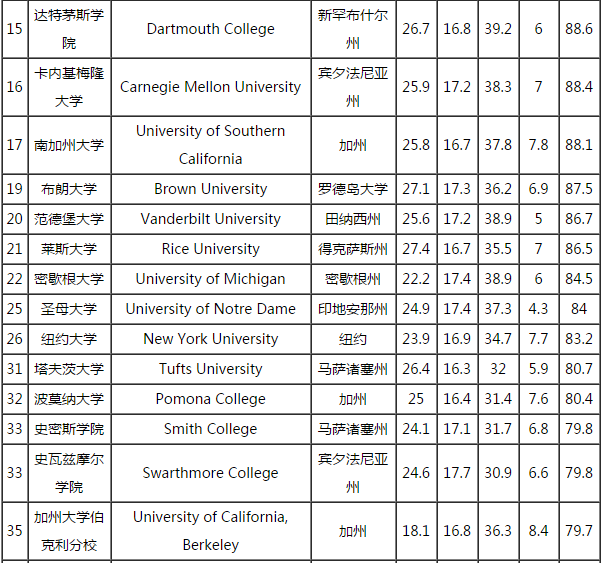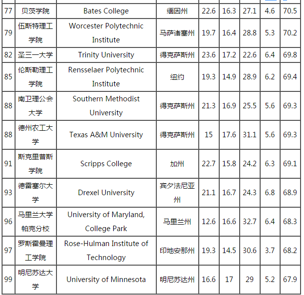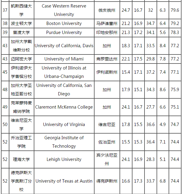 2017年WSJ/THE美国通用工程专业大学排名