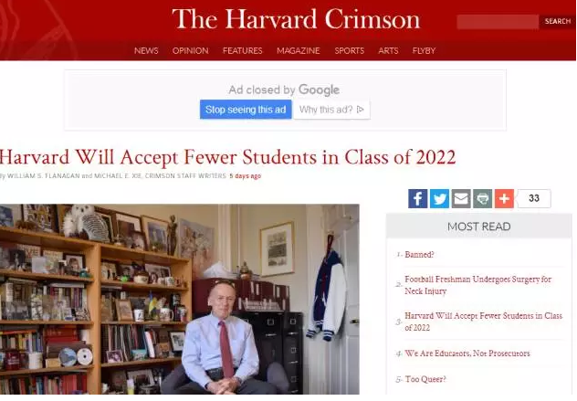 上周,哈佛大学校报发布了一条重要新闻!学校负责招生和经济补助的主任William R. Fitzsimmons明确表示在最新的2018fall申请季,哈佛将减少招生数量!