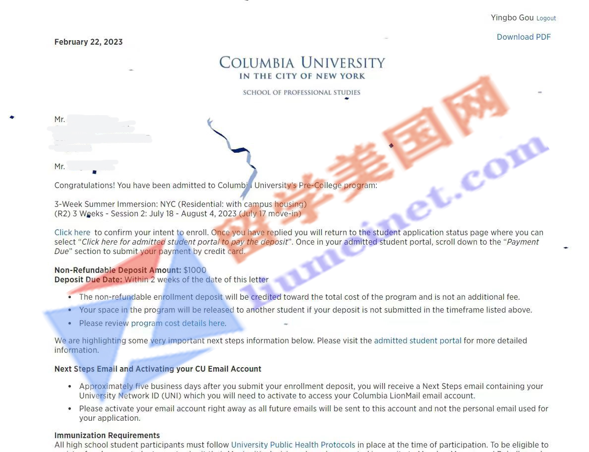 录取喜报,恭喜留美网G同学斩获哥伦比亚大学Columbia University in the City of New York夏校录取~