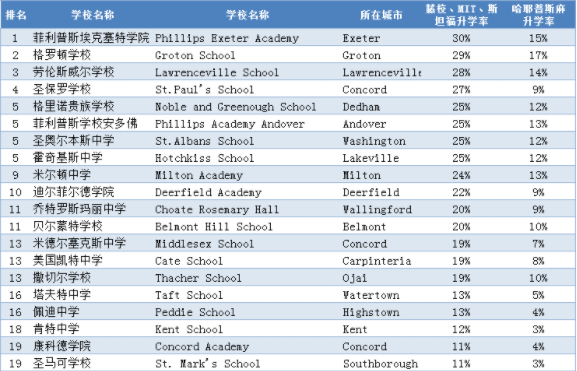 前十里面还有我们耳熟能详的圣保罗学校、格里诺贵族学校、菲利普斯学校安多佛、迪尔菲尔德学院等。