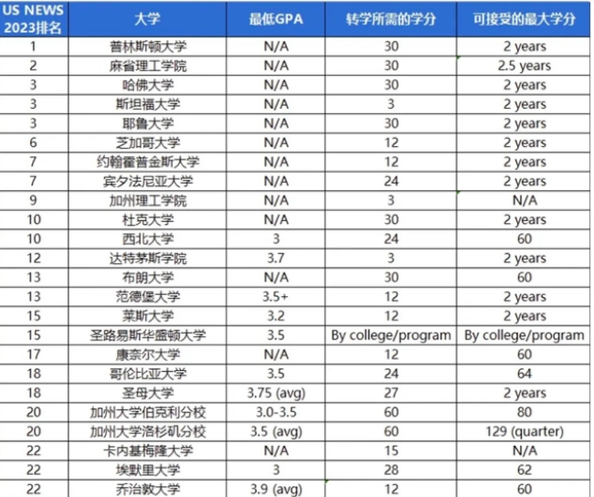 美国综合排名Top 25学校对于转学生资格的界定标准: