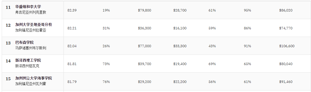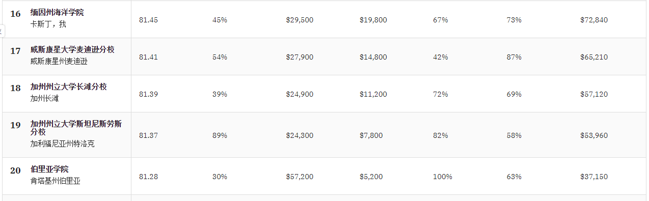 还有一些在U.S.News全美综合大学排名较低的大学,在这份性价比榜单里表现也不错。