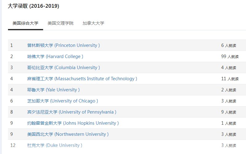 4.近5年大学录取非常优秀:UCLA17人,普林斯顿18人,耶鲁24人,哈佛51人,约翰霍普金斯22人,加州理工5人,斯坦福36人,哥大33人,MIT8人,宾大44人等等