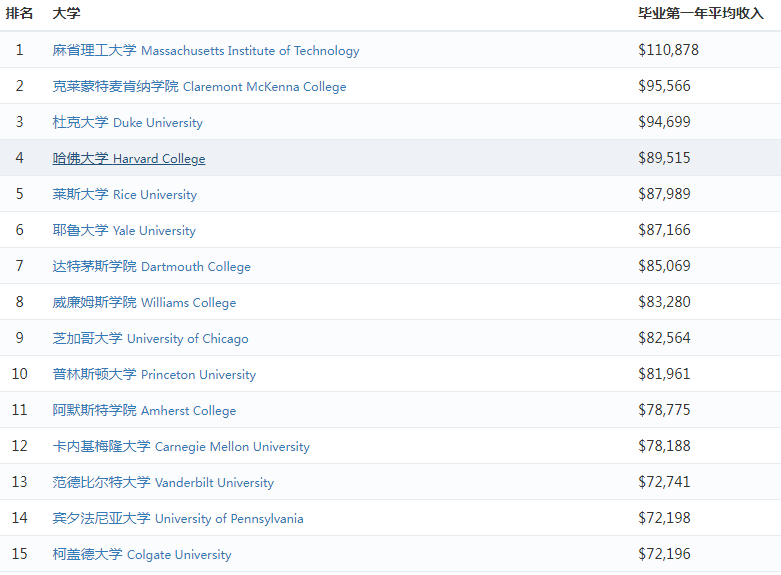 经济学专业薪资待遇排行前10的美国顶尖大学: