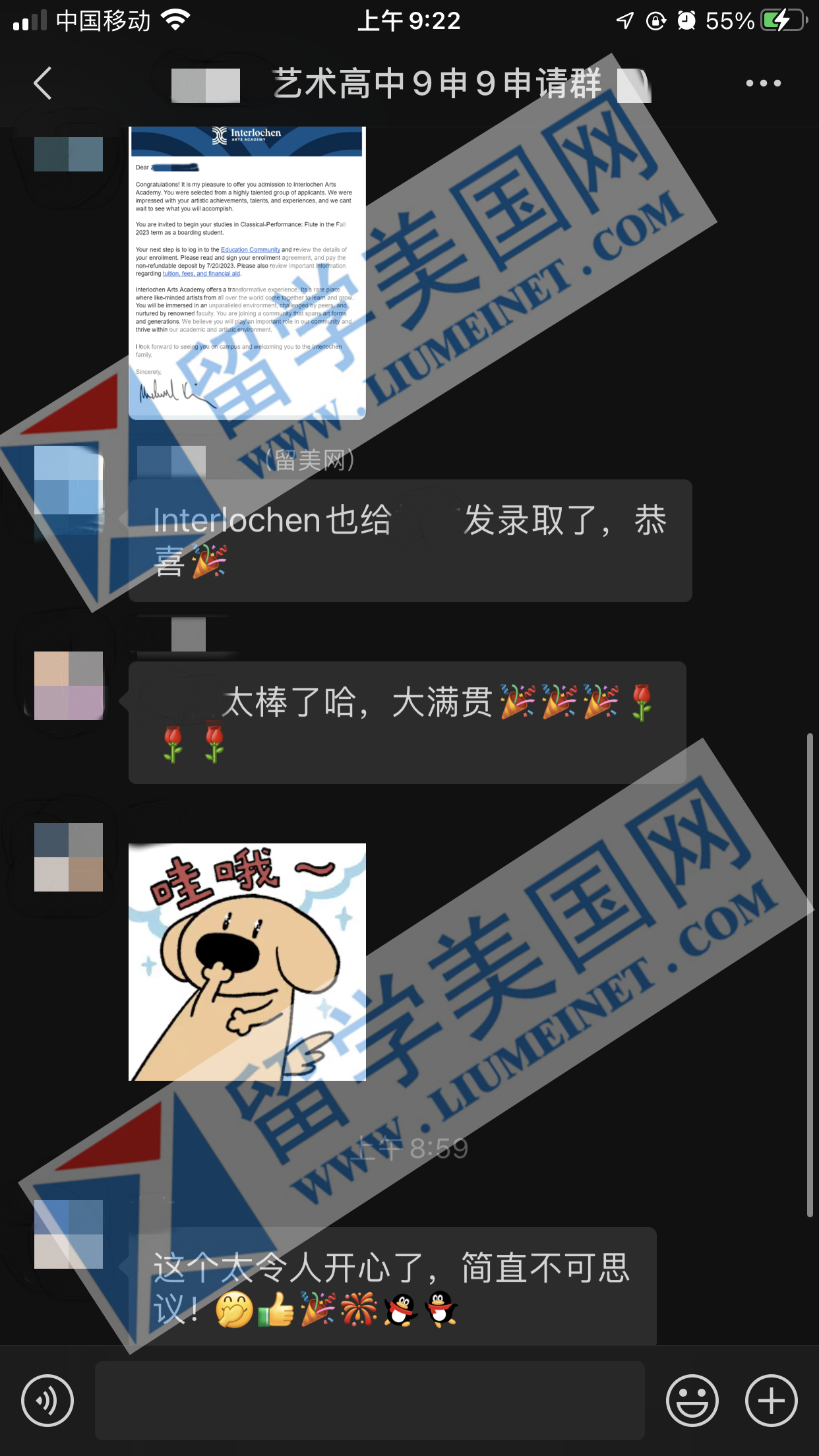 X同学的艺术特长——长笛本身表现非常棒,外加咱们留美网团队老师对学生在面试环节的培训和引导,转变表达的逻辑思维方式,整体表现进步非常明显,最终成功斩获了因特劳肯艺术学院Interlochen Arts Academy的录取offer!
