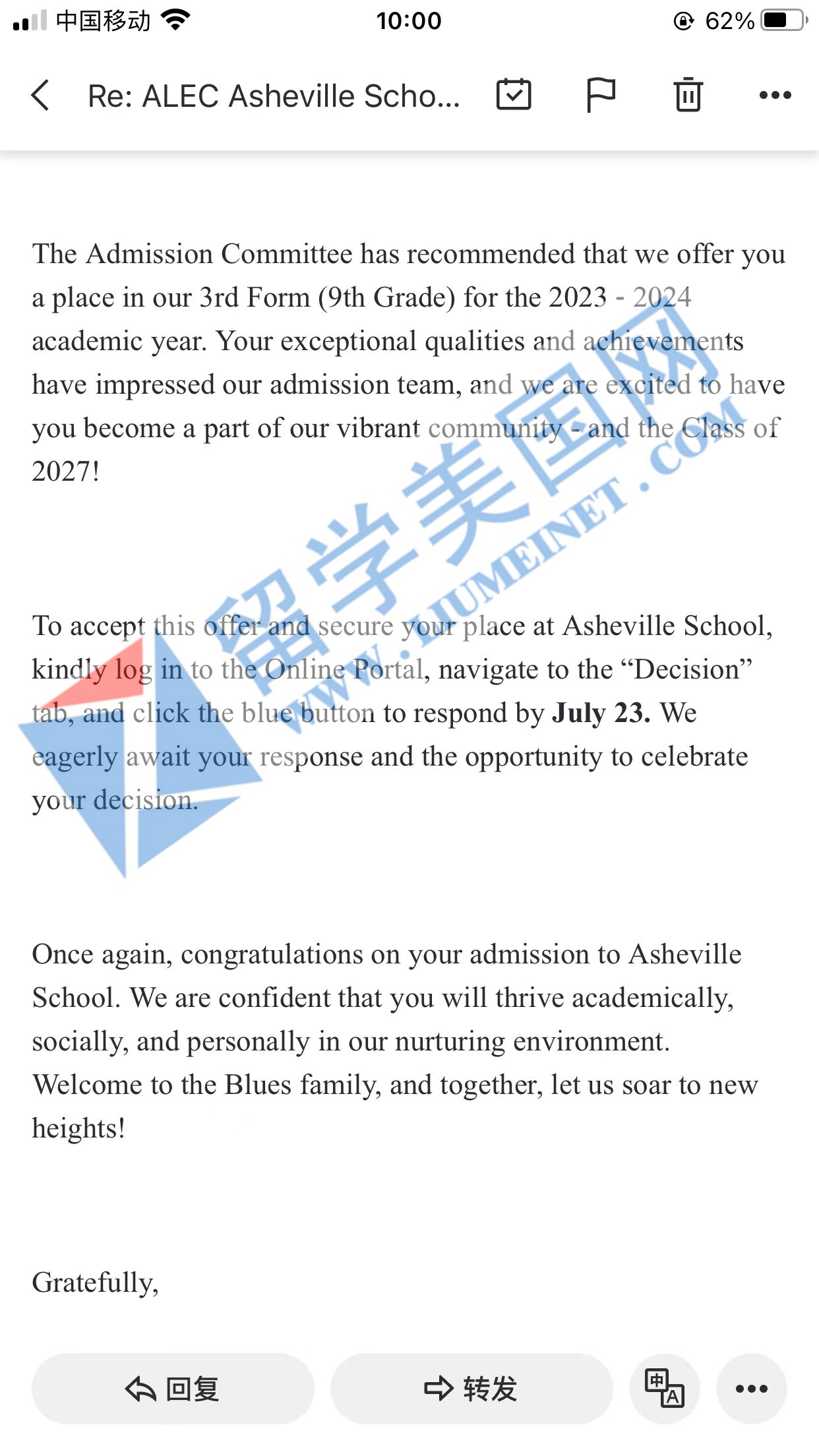 【录取喜报】恭喜留美网学子Z同学成功斩获阿什维尔学校 Asheville School录取offer!