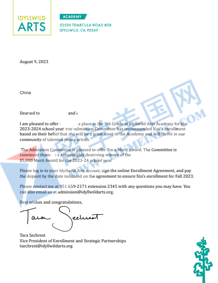 恭喜留美网学子Z同学成功斩获艾迪怀德艺术高中Idyllwild Arts Academy录取offer!
