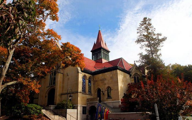 走进Bryn Mawr,你会有一种置身于一幅田园风光油彩画之中的错觉。这所坐落在宾夕法尼亚州东部的女子学院,校园之美只能用“幽雅”二字形容,校园就像一个小巧玲珑的法国式花园。哥特式建筑在建成时算得上是新意盎然。该学院的师生比例为1:8,学校有70.7%的班级学生少于20人。