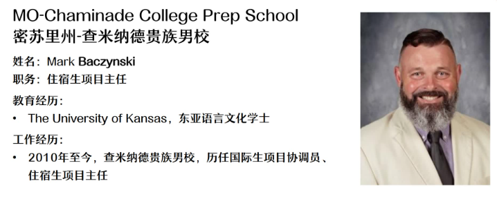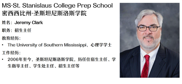 届时,将有圣斯坦尼斯洛斯学院、斯图尔特霍尔、基督教堂学校、华盛顿学院、查米纳德预备中学五所寄宿高中的招生官们与诸位同学见面,还望诸位同学提前做好相关准备,以更加良好的状态展现自我。