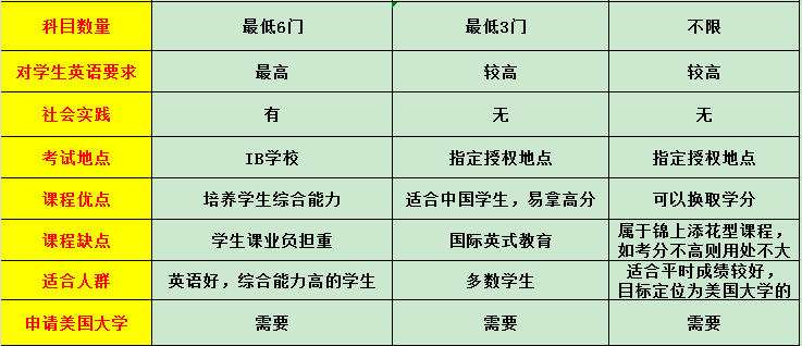 以上就是关于IB课程、A-level课程、AP课程三大国际课程的介绍和对比,希望对诸位同学和家长在美高择校和美高申请方面有帮助!