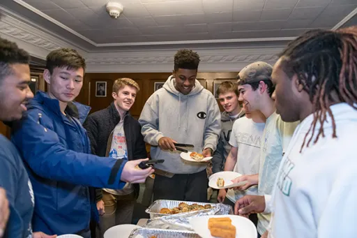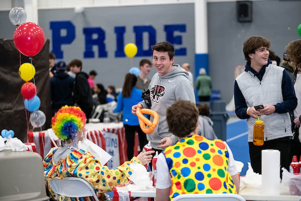 校园活动,如咖啡馆音乐会、舞蹈、美食节、特殊节日庆祝活动、宿舍竞赛,以及 Mini-THON 和 Skate Against Cancer 等年度活动。