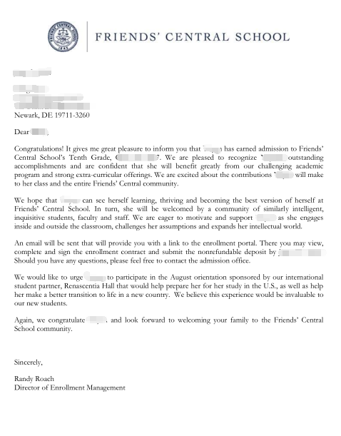 补录捷报!恭喜留美网L同学补录到劳伦斯中学!